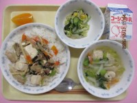 今日はパンの献立でした。甘い揚げパンとオリーブオイルと香辛料が香る、プロバンストーストでした。どちらのパンも人気でした。おかずには、大豆がたっぷり入ったチリコンカンと焼肉サラダでした。大好きなメニューが多く、いつも以上にしっかり食べ、午後の意欲につながっているようです。
