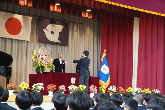 2年生の送辞と送る歌の後、卒業生代表による答辞が読み上げられました。想いのこもった答辞に続き、3年生による式歌の朗々たる歌声が体育館に響きました。