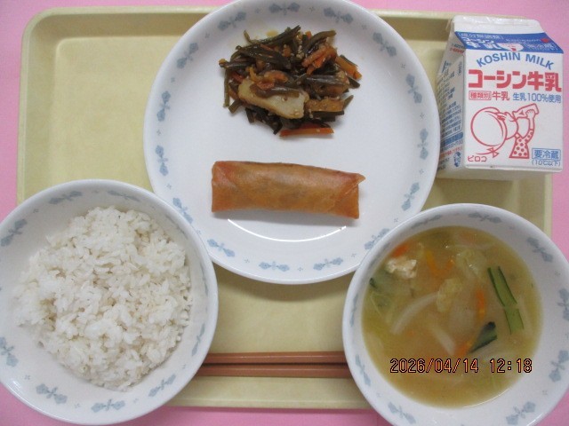 今日は春巻きを手作りしました。揚げたての春巻きは、皮がパリっとした食感で、どのクラスも完食。調理員さんのビタミン愛がたっぷりでした。
