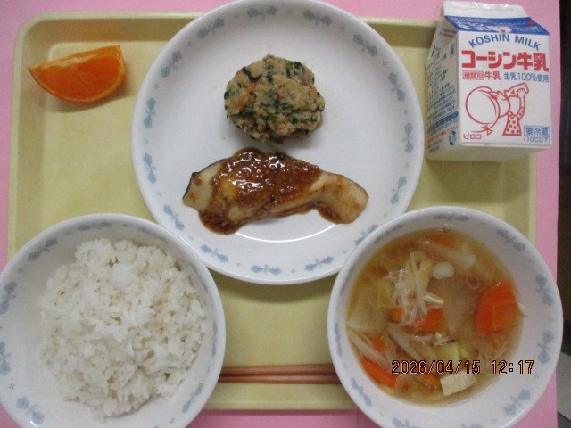 今日は和食の献立でした。旬のさわらは、脂がのって素材だけでも美味しいものでした。おからを野菜と一緒に煮つけた「小松菜おから」は味がしみ、ごはんが進む味付けでした。日本の伝統的な食事は、栄養バランスに富んでいます。苦手なものもひと口食べる気持ちがもてるといいですね。