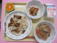 アーモンドココアは、ローストしたアーモンドを砂糖・水・はちみつで作ったタレにからめて、平らに広げて冷まします。最後にココアと粉糖をまぶして完成です。アーモンドには抗酸化作用のあるビタミンEが豊富に含まれていますので、積極的にとりたい種実です。新メニューでしたがよく食べてくれていました。