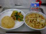 すき焼き丼、きゅうりとくらげの和え物、さつま芋のみそ汁、デコポン、牛乳 今日は、...