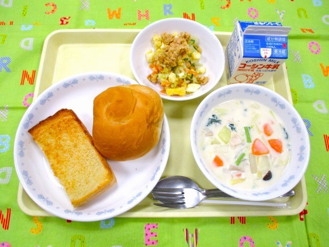 アーモンドトースト パイナップルパン マカロニクリームシチュー スパイシーツナサラダ
