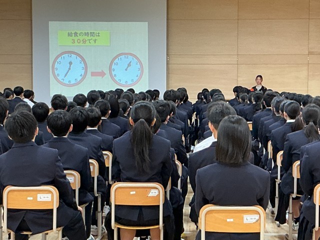 1年生は自己紹介のあと、小岩二中の生活の約束ごとや
