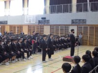 4月11日(火)、対面式が行われました。学校生活の紹介では、学習や生徒会活動、部活動に関しての説明が行われました。歓迎の花のプレゼントや校歌紹介も行われました。3年生の代表から、「今年は70周年の年です。中学生の自覚をもち『オール岩二』を作っていきましょう」と呼びかけがありました。新入生からは、「小岩第二中学校の一員として頑張りたい」と元気に挨拶がありました。