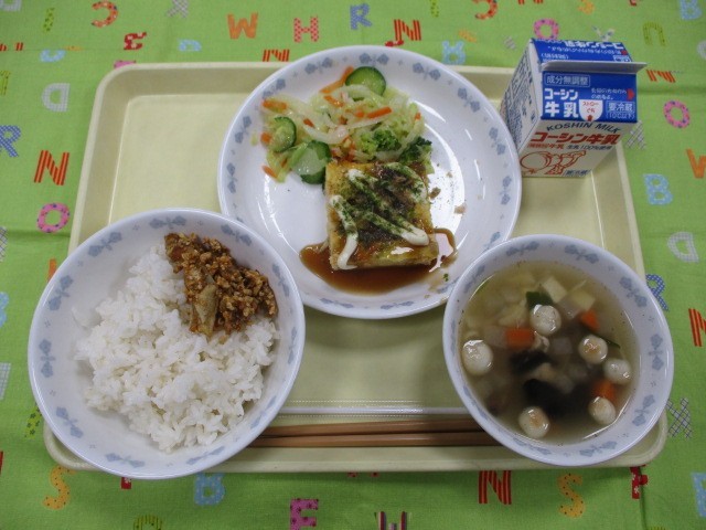 今日で東日本大震災から14年が経ちました。ちょうどその頃生まれた子供たちが今学校に通っています。彼らは、当時の地震のことを知らない世代です。今日はこづゆという福島県の郷土料理を出しました。生まれたころに大きな地震があったんだよと給食のメモで伝えています。再び大きな地震が来ても大丈夫なように、十分に備えてくれたらと思います。