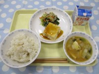 梅雨の始まりの季節ということで、入梅献立でした。梅の雨と書いて梅雨(つゆ)とする理由は、梅の実が熟すのが5月から6月ごろで、この時期に雨が多く降ることから、梅雨と呼ぶようになったとされています。