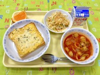たまごトースト 揚げじゃが芋とツナの豆サラダ アクアパッツァ風スープ オレンジ ...