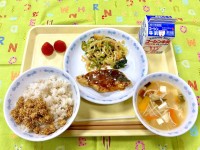 麦ごはん アーモンドごぼう 赤魚の煮付け たっぷりチーズとキャベツの和え物 厚揚...
