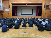 今日は3年生は進路学習の学年集会がありました。 進路指導主任の先生から、高校入試に関する詳しいお話があり、生徒たちはプリントを見ながら真剣な表情で聞いていました。