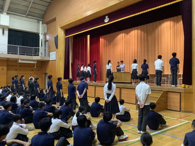 今日は生徒会朝礼にて後期専門委員会の任命式がありました。
