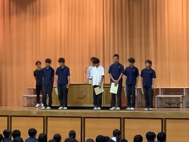 10月6日(月)生徒会朝礼 後期専門委員会任命式と表彰