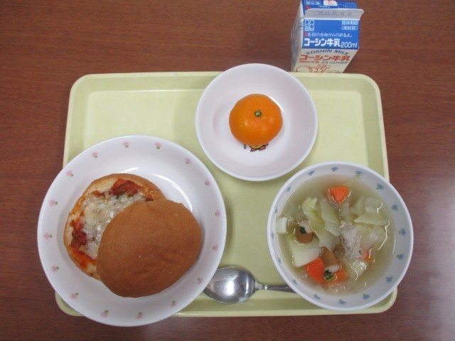 ・ピザパン ・ポトフ ・果物(温州みかん) ・牛乳
