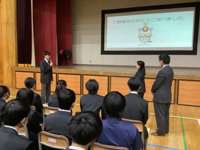 今日は社会保険労務士の國分真貴子先生を講師にお招きして2年生にマナー講座の講演をしていただきました。