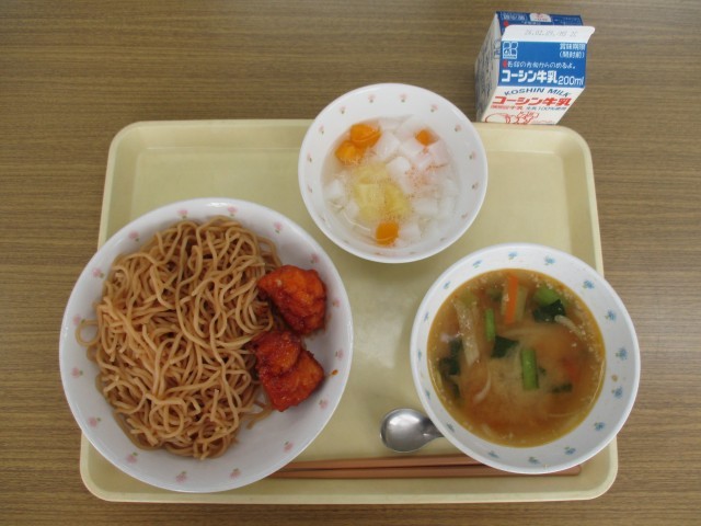 ・みそラーメン ・ヤンニョムチキン ・カルピス寒天ポンチ ・牛乳