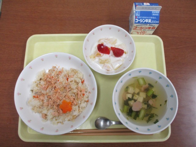 ・ちらしずし ・三つ葉入りすまし汁 ★フルーツヨーグルト ・牛乳
