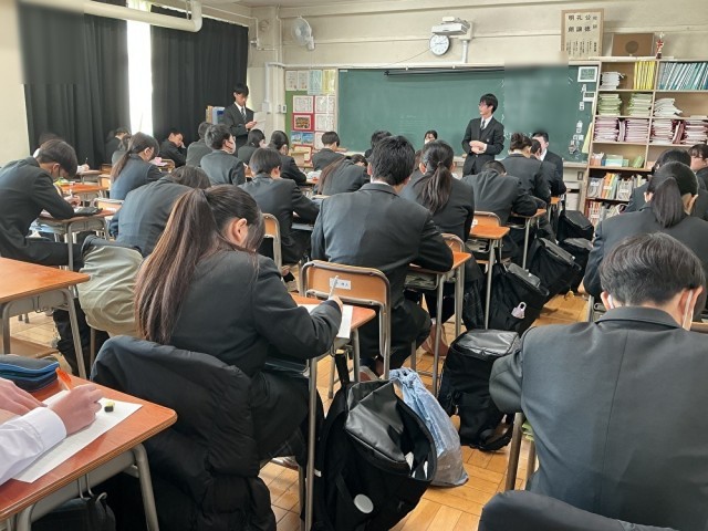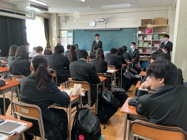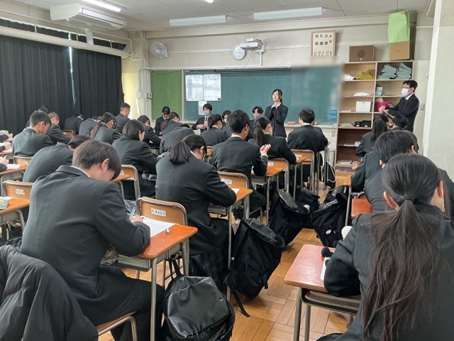 受験を終えたばかりの3年生が2年生の教室を訪問し、自身の体験を