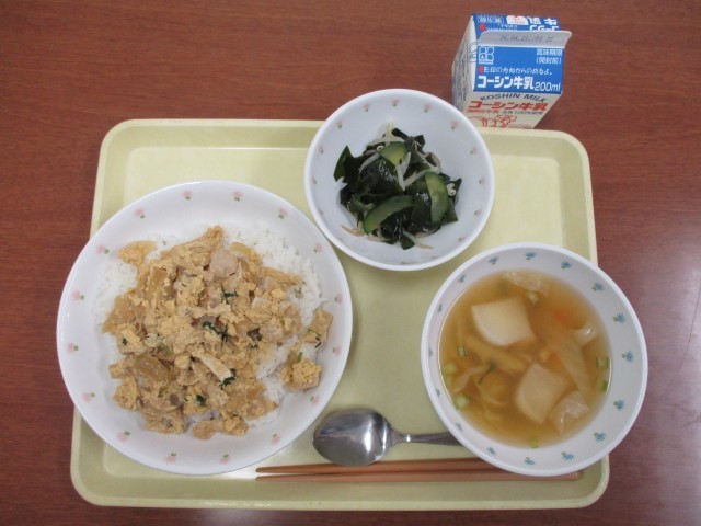 ・あぶたま丼 ・きゅうりとわかめの甘酢あえ