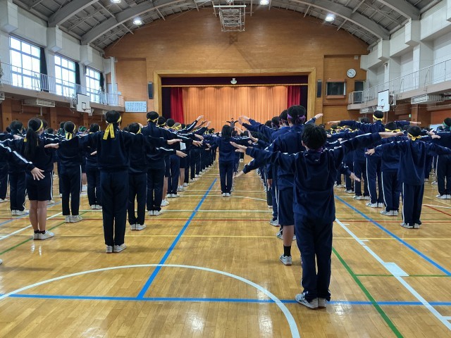 天候により体育館での実施となりましたが、皆キビキビと動いていました。
