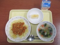 今日の給食の「エリンギとしめじの鶏飯」は、旬のエリンギとしめじ、鶏肉に甘辛い味をつけて炒め、ご飯に混ぜ込みました。きのこの食感が楽しい混ぜご飯です。