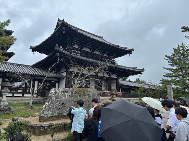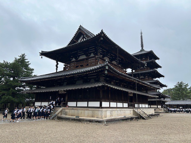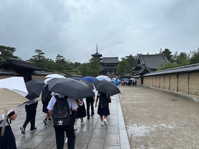 10月5日 3年生修学旅行 1日目(その4) 公開日 2025/10/05 更新日 2025/10/05 できごと 法隆寺に到着しました。あいにく小雨が降る中でしたが、歴史の重みを感じながら見学することができました。 いいね(5)