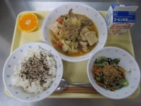 今日の給食は“小松菜一斉給食”でした。毎年JAの食育の一環で、地元の小松菜をより知ってもらうために、小松菜を無償提供していただき、”小松菜一斉給食”を実施しています。小岩地区の小中学校では、統一メニューで実施しています。