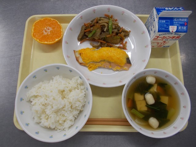 今日の給食は“だしを味わう和食の日”の献立でした。ユネスコ無形文化遺産に和食が登録されたため、“いいにほんしょく”の語呂合わせで、11月24日は和食の日として定められました。24日はお休みのため、一足早く取り組みました。