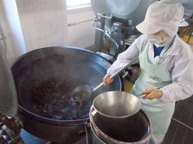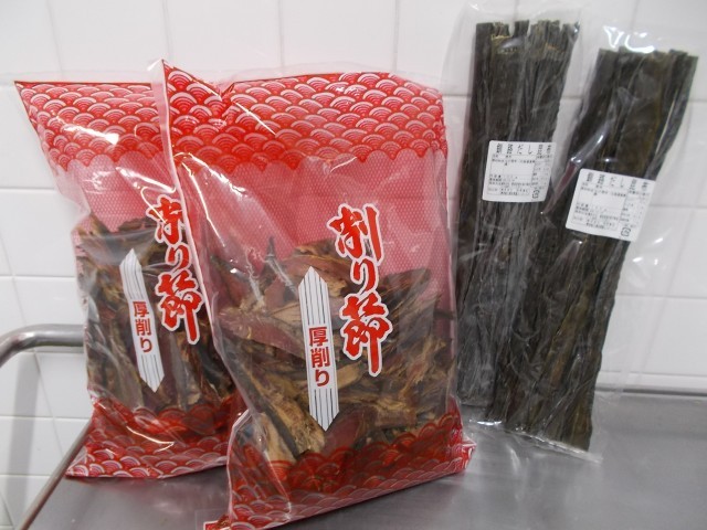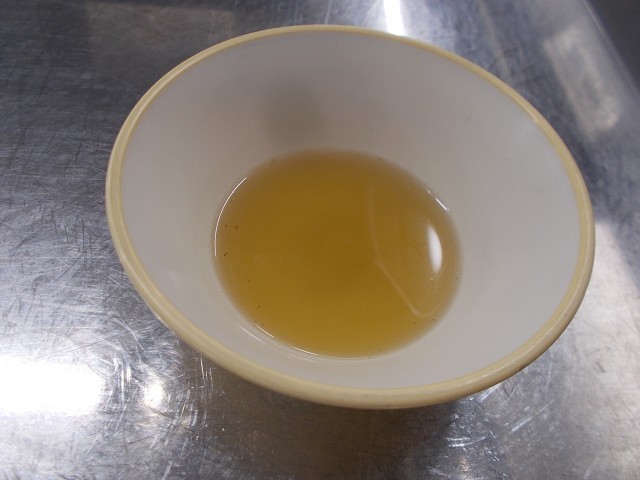 今日はかつおの厚削りとだし昆布の合わせだしにしました。だしの味をしっかり感じられるように、だしの量はいつもより多めに使いました。だしがすごく濃く出ているので、だしだけでも4枚目の写真のように濃い色が出ていました。そんなだしを使って作ったすまし汁は、いつもよりもさらに塩分を控えて作りました。だしをしっかりとることで、減塩にもつながります。このだしを使ってきんぴらごぼうも作りました。