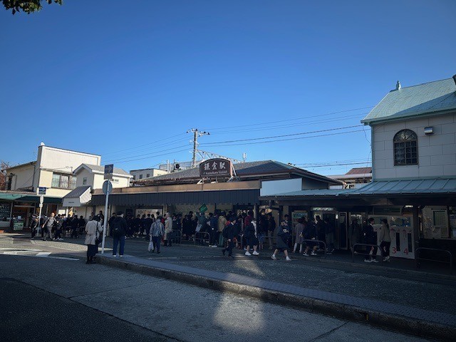 今日は1年生の鎌倉校外学習です。今日の鎌倉はとても穏やかな天気で、絶好の観光日和です。小岩駅から班行動を始め、さっそく鎌倉に生徒たちが到着しています。1日、頑張ってほしいです。