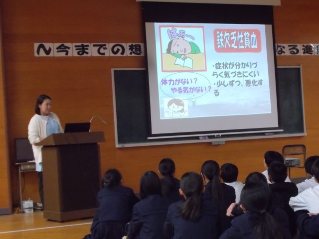 6校時、2年生の食育の授業を養護教諭と栄養士で行いました。テーマは『貧血について』『野菜を食べよう』でした。貧血チェックや野菜ゲームなど活動を交えながら楽しく学ぶことができました。