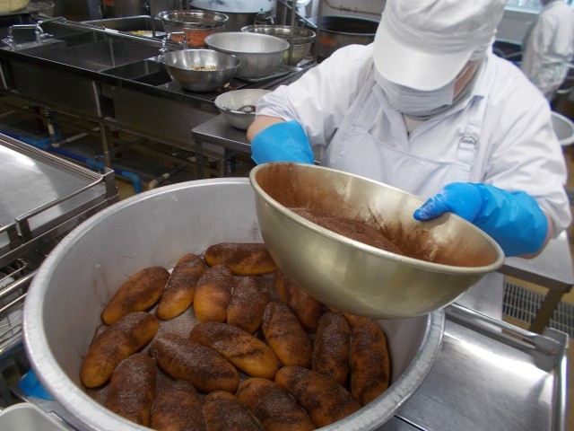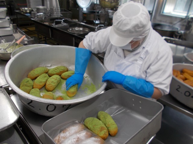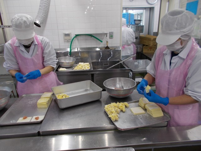 今日はセレクト給食でした。3種類の味から事前に選んでおきます。1番人気は抹茶味でした。約半数の人が抹茶を選びました。3種類だと選ぶのは楽しいですが、教室で配膳の際少しバタバタしていました。給食室でも作業が増えて混乱しやすいのですが、ベテランの調理員さんがテキパキと作業を進めてくれました。