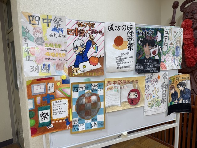 2月13日 四中祭(展示の部) 公開日 2026/02/14 更新日 2026/02/14 できごと 本日は四中祭(展示の部)を実施しました。美術や家庭科など授業で製作した作品や、各学年で取り組んだ作品、美術部などの部活動で製作した作品などを展示し、生徒たちが見学を行いました。生徒たちは様々な作品に触れることができ、楽しみつつ多くのことを学ぶことができました。 +1 いいね(1)