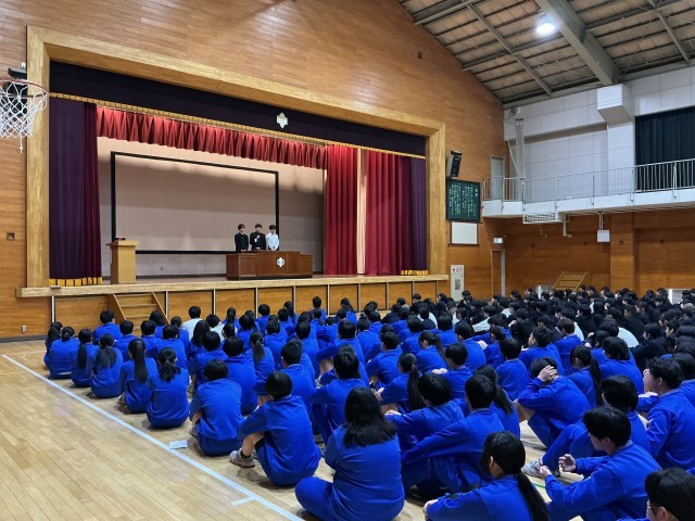 3月9日 朝礼 公開日 2026/03/09 更新日 2026/03/09 できごと 本日は朝礼があり、校長先生の話の後に表彰を行いました。その後、生徒会本部と2年学級委員より、3年生に向けての感謝の言葉がありました。 いいね(0)