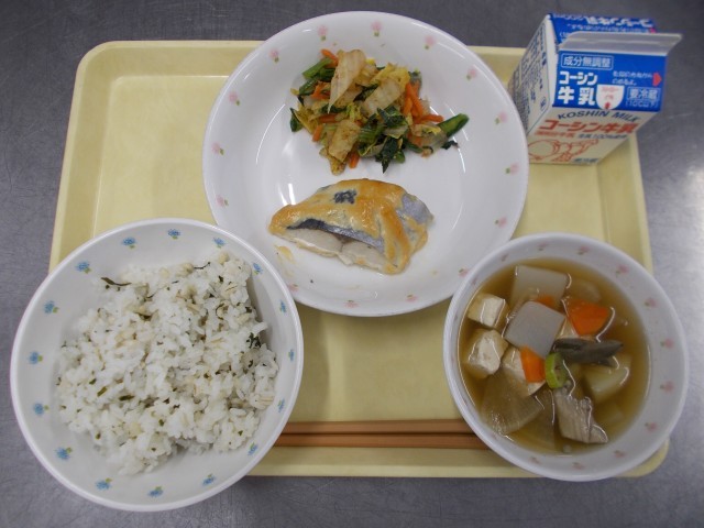 今日の給食の主菜は『魚の味噌マヨ焼き』でした。魚は鰆を使いました。鰆は油が少ない魚なので、マヨネーズの油が加わることでしっとりと仕上がり味にコクもでておいしくなります。鮭などほかのお魚でも合うのでご家庭でも簡単に作ることができます。
