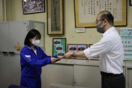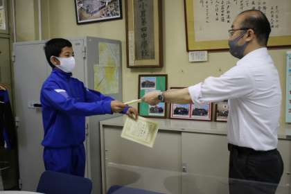 本日の朝礼で、剣道部の表彰が行われました。