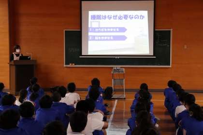 1 生活習慣について 2 睡眠について 3 朝食のバランスについて 4 朝食の役割について  最後に夏休みの宿題を出しました。 夏休みに、バランスのよい朝食を作るです。