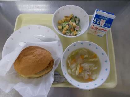 【牛乳 フィッシュバーガー シーザーサラダ マカロニスープ】