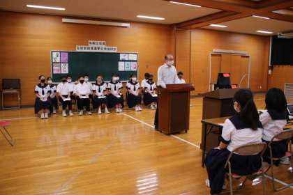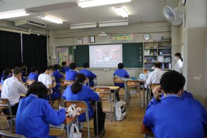 立候補者は武道場で演説をし、オンラインで各クラスに配信する形で