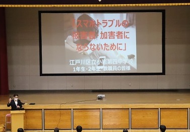 11月11日(木)、1・2年生を対象に、セーフティ教室を実施しました。「スマホトラブルの被害者・加害者にならないために」というテーマで、KDDIの大久保輝夫様を講師としてお招きし、インターネットやスマホに潜む危険性について、たくさんの例を挙げながらお話ししていただきました。改めて、スマホ等を使用するとき注意することについて、考えることができました。