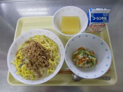 【牛乳 担々麺 じゃこの中華サラダ パインゼリー】