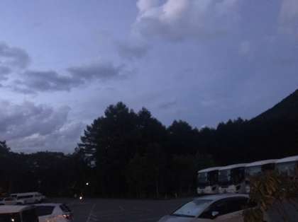 早めの夕食を終え、お風呂に入った後、ナイトハイクに出かけました。夜の気温は23度ほどで、東京とはまるで違って涼しい散策の時間です。暗くなるにつれて夜空には星がたくさん現れ始め、これも東京では味わえない夜景を楽しみました。
