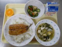 ・蒲揚げ丼・きゅうりとかぶの塩昆布和え・白菜のすまし汁・みかん・牛乳 今日の主食...