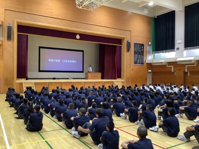 校長先生からは、修学旅行や定期考査、生徒会役員選挙、そして秋桜祭など、これまでの学校生活で生徒たちが取り組んできたことに触れながら、「今、自分にできることを全力でやることの大切さ」についてお話がありました。また、「不平や不満を口にするだけでなく、改善のために自分ができることを考えよう」という言葉に、生徒たちは真剣に耳を傾けていました。