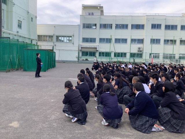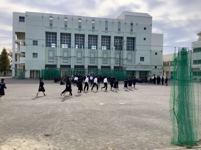 11月12日(水)の定期考査最終日、学活の時間に火災を想定した避難訓練を実施しました。生徒たちは放送の指示に従い、安全を確保しながら速やかに校庭へ避難しました。