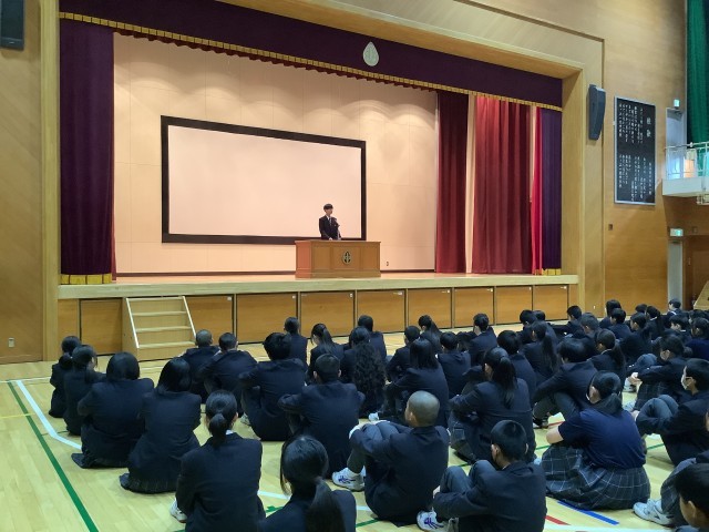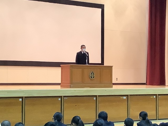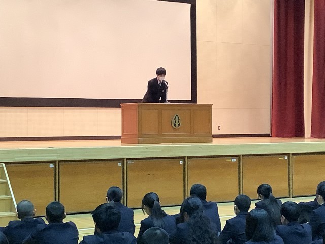 最後に、生徒会長より、文化祭や職場体験などのこれまでの活動を振り返り、3年生は残りの学校生活を悔いのないように頑張ってほしいとの激励の言葉がありました。