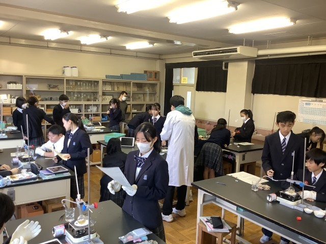 さらに、器具の準備や観察の分担など、班員同士が協力し合うチームワークも重要となります。生徒たちは声をかけ合いながら役割を分担し、時間内に実験を無事に終えることができました。