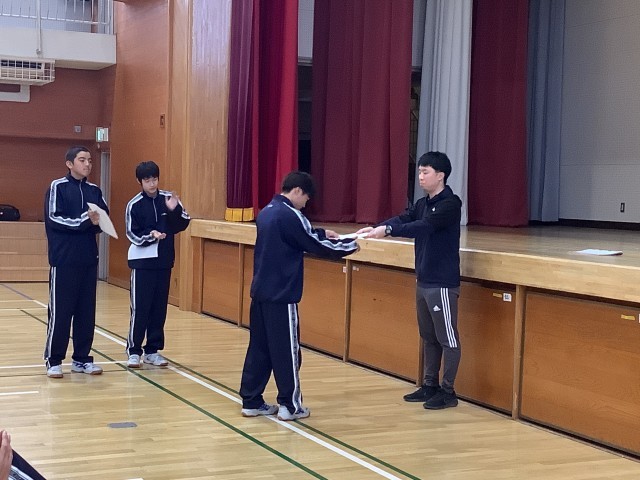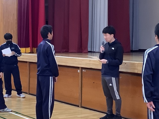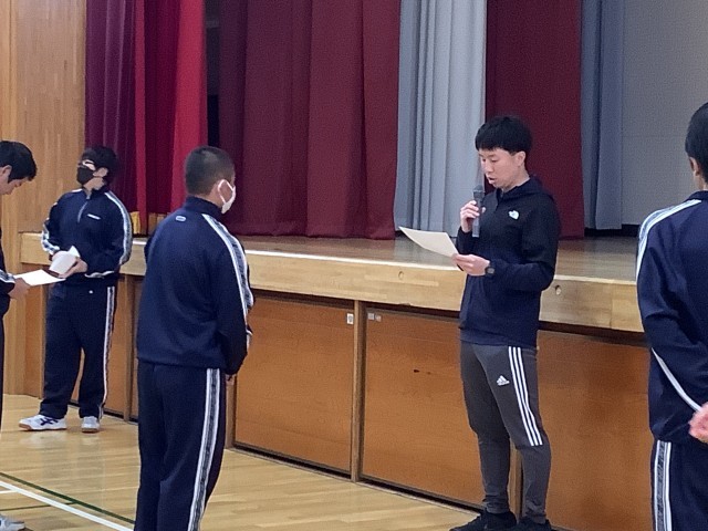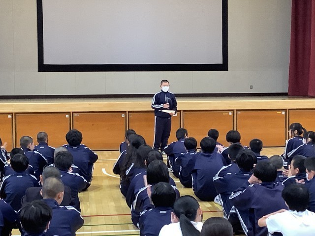 最後に学年主任から、冬休みに入るにあたり、心やメンタル、身体の二つの安全に気を付けて過ごし、「3年生0学期」となる3学期を迎えてほしいとの締めくくりの言葉がありました。
