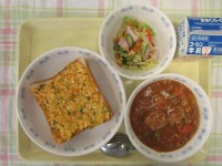 揚げパン・焼き肉サラダ・ワンタンスープは3年生のリクエストメニューです。多数のリクエストがありました。