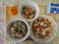 今年の十五夜は、9月15日でした。昨日は、定期考査のため、給食が無かったので、今日の給食をお月見給食にしました。(定期考査、お疲れ様でした。)