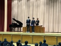 3月9日(月)に、1・2年生合同の卒業式練習を行いました。練習のはじめに、2年生...